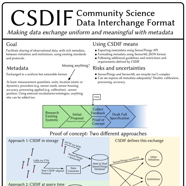 In het afgelopen jaar hebben we deze wens concreter gemaakt in CSDIF: het Community Science Data Interchange Format. We schreven een voorstel en werkten aan een eerste proof-of-concept.